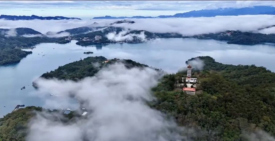每个中国人幼年时就在心中建造了一个“日月潭”,她在祖国的宝岛,那是祖国的山河。我们突然感觉,这世上有两个“日月潭”:一个在中国台湾省,是青山环抱的一湖碧水,是当地人朝夕相伴的风景日常;一个在海峡另一边,在每位中国人小时候的语文课本里,是一代代中国人心中的祖国山河。